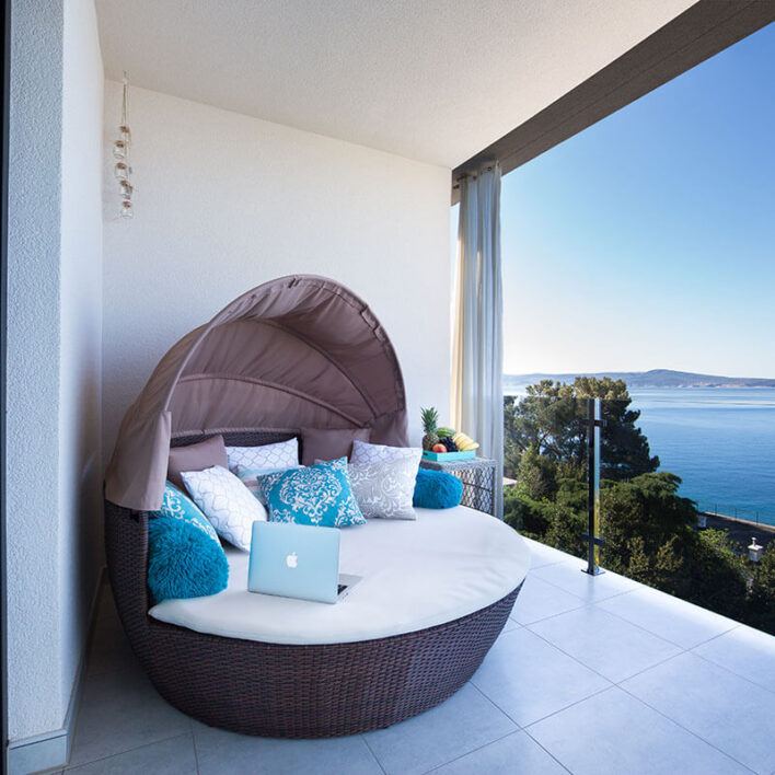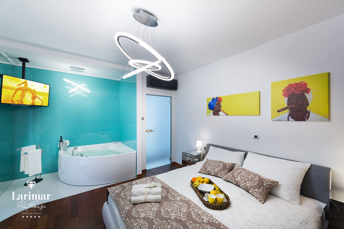 Luxury and elegant, with incorporated Jacuzzi and balcony. Offers breathtaking view of the sea and a Krk Island.